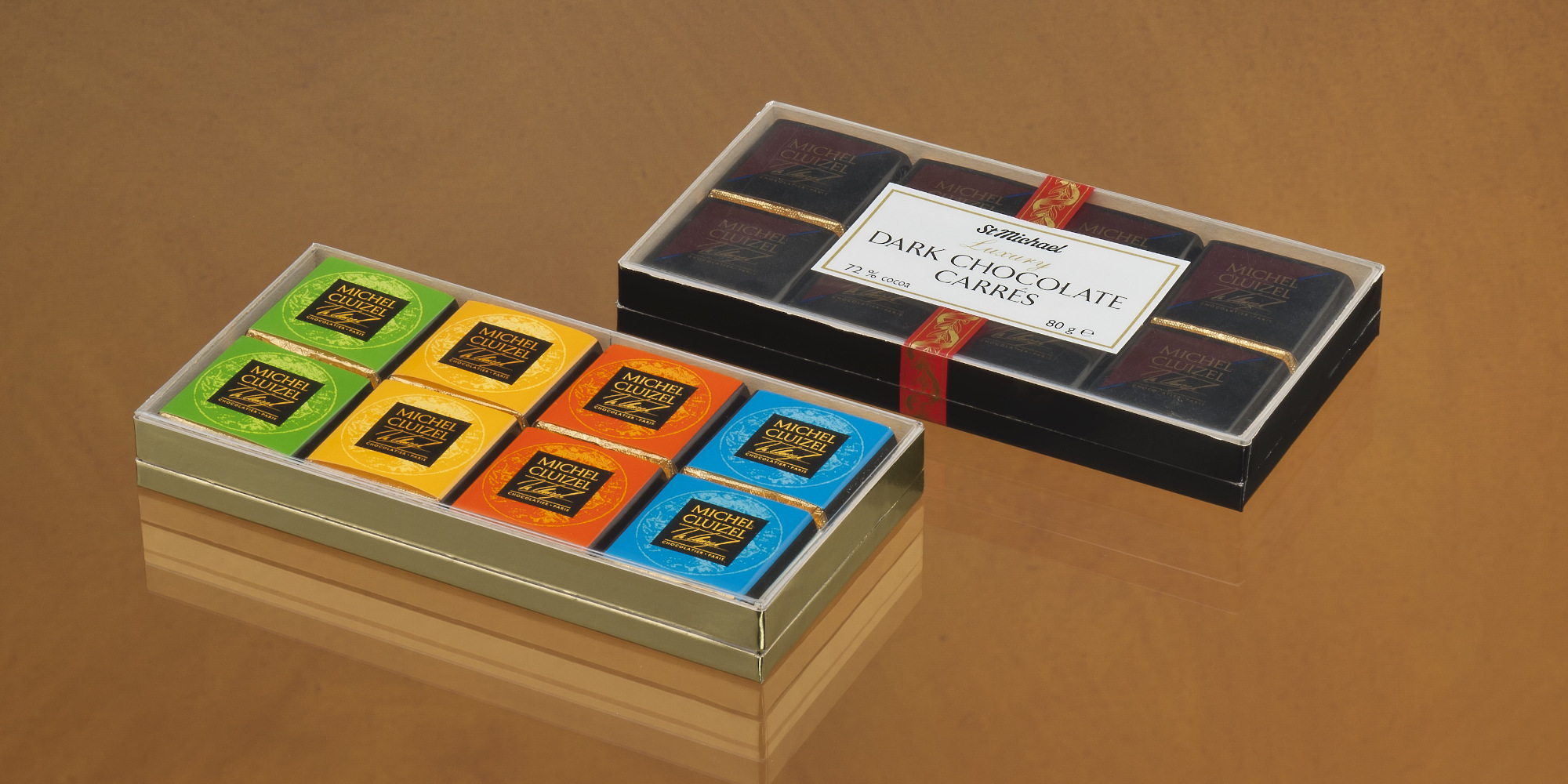 L’intérieur de notre coffret peut être agencé de différentes façons, soit avec des intercalaires pour une présentation soignée et individuelle de chaque chocolat, soit comme vous pouvez le voir ici, grâce au produit lui-même. Présentez vos chocolats dans leurs plus beaux atours dans un emballage en carton haut de gamme destiné à cet effet. Un présent qui sort du lot.