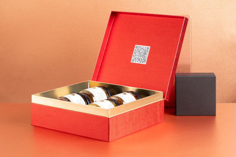 Impressionnez vos clients en leur offrant plus qu’un simple bon d'achat glissé dans un carton. Ce sont l’emballage lui-même et son code individuel qui deviennent un bon d’achat. Le client peut choisir et tester les goûts qui se trouvent dans l’écrin de votre gamme de chocolats ou de bonbons, et c'est particulièrement intéressant pour présenter des échantillons de votre assortiment. La personne qui reçoit le cadeau peut ensuite scanner le QR code sur le couvercle du coffret. Sur la page d’accueil créée sur mesure pour le produit, le client peut alors commander l’une des confiseries en grand format.